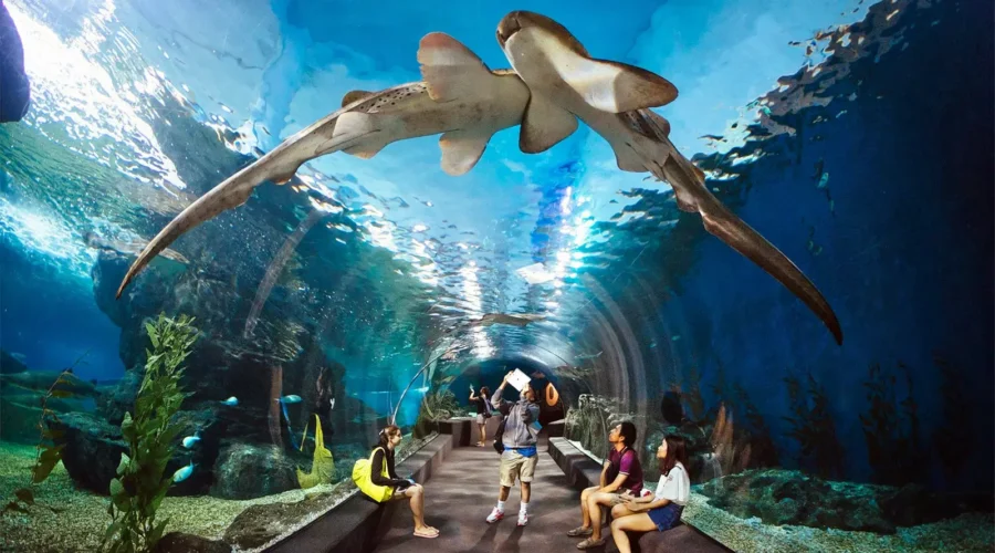 •  Feeding Shows – Watch professional divers feed sharks, turtles, and rays at scheduled times.